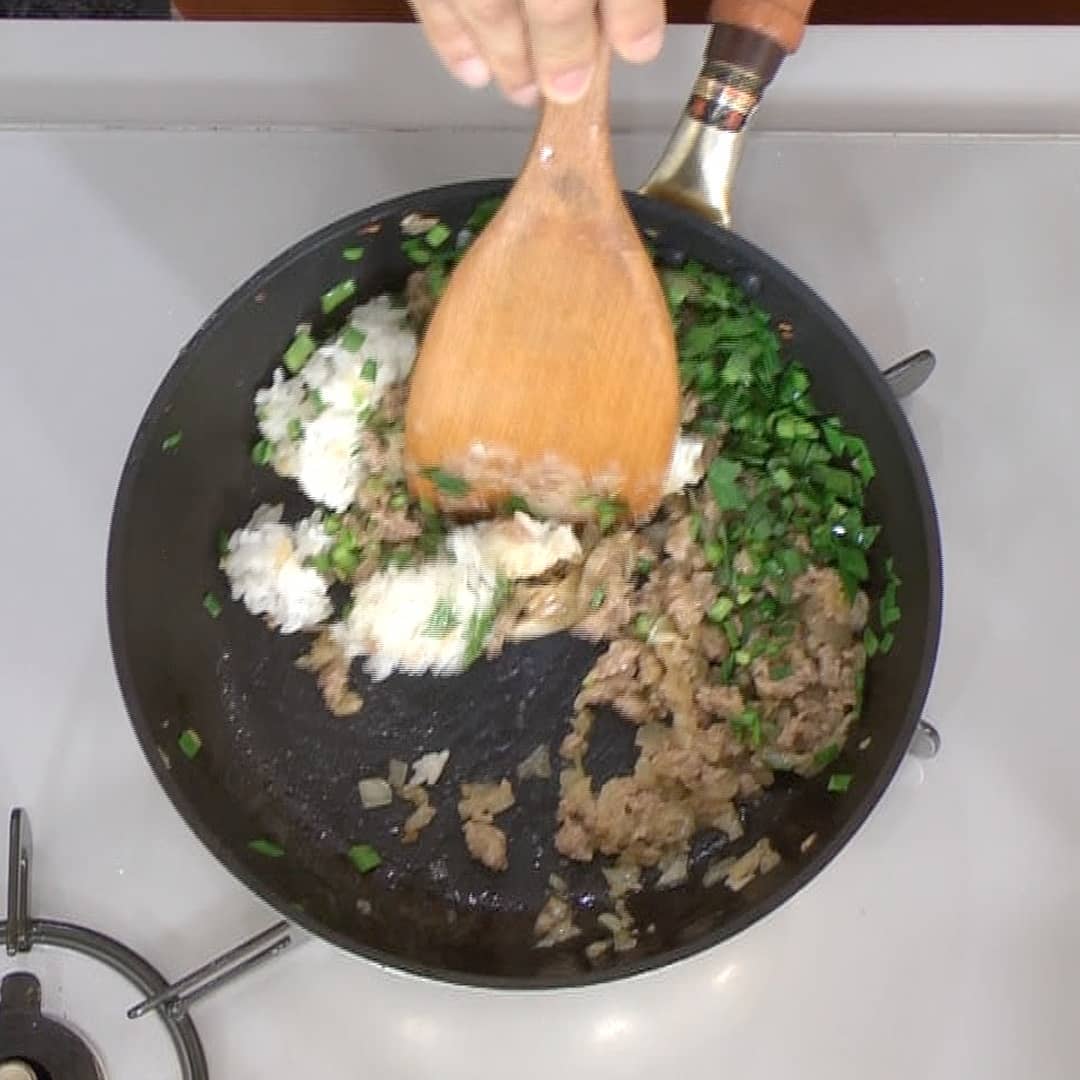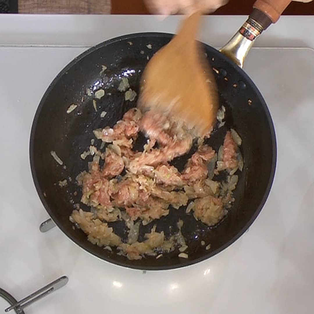③ さらに、炒めた玉ねぎを加えよく混ぜ合わせる。