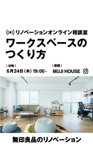 @MUJI HOUSE 無印良品の家 MUJI無印良品の家: みなさんの住宅購入・中古マンション・リノベーションのさまざまな疑問・質問に、趣味=中古マンションの“こっしー”がお答えする「リノベーションなんでも相談室」。 … 2021-06-24 みなさんの住宅購入・中古マンション・リノベーションのさまざまな疑問・質問に、趣味=中古マンションの“こっしー”がお答えする「リノベーションなんでも相談室」。 今回は、「ワークスペースのつくり方」をテーマに語ります。 残りの時間は皆さんからの質問に“こっしー”がお答えします。 コラム「リノベーションなんでも相談室」もどうぞ。 https://house.muji.com/life/clmn/renov_nandemo/ Ciao, Nihon.