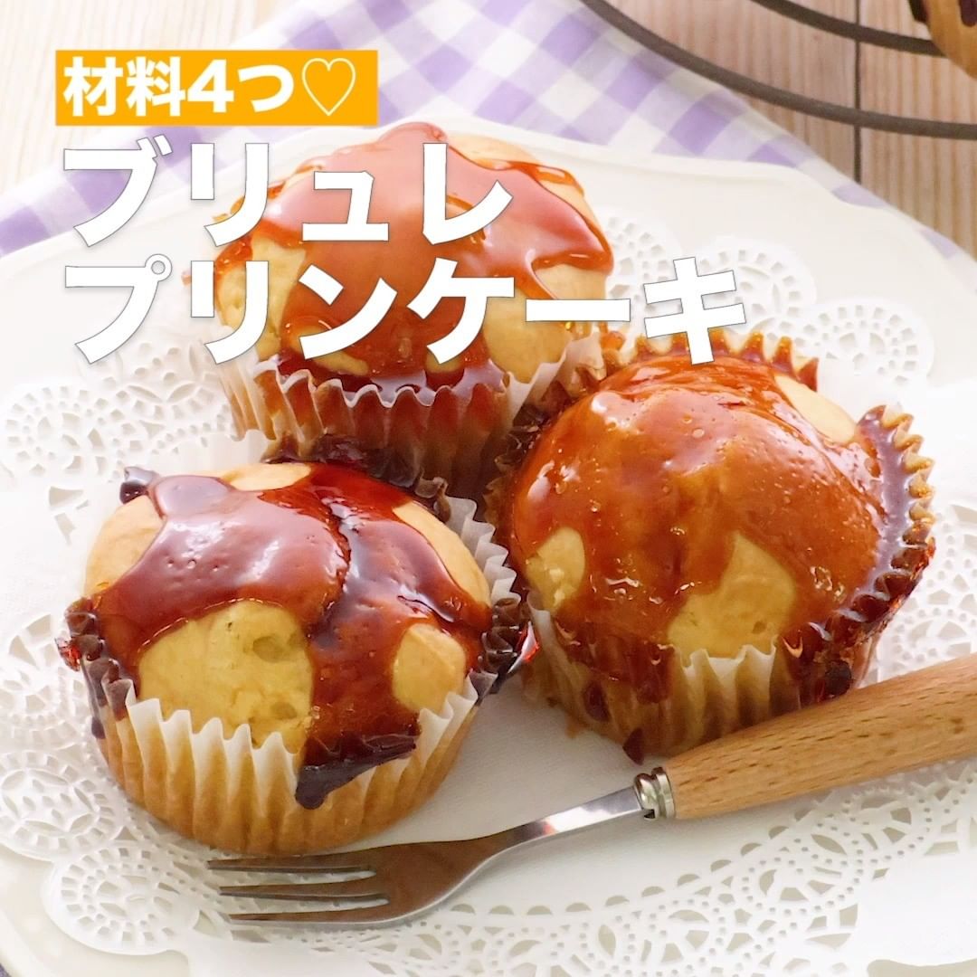 優しい甘みのプリンケーキにパリッとほろ苦いキャラメルがとっても合う!材料も4つ!作り方もとっても簡単!今日のおやつにいかがでしょうか?