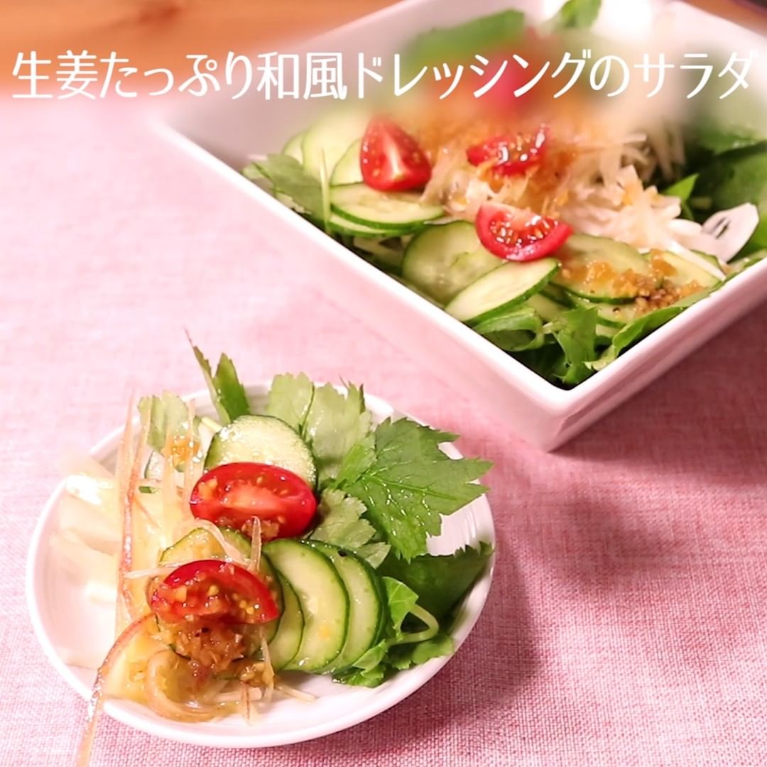 ④生姜たっぷり和風ドレッシングのサラダ