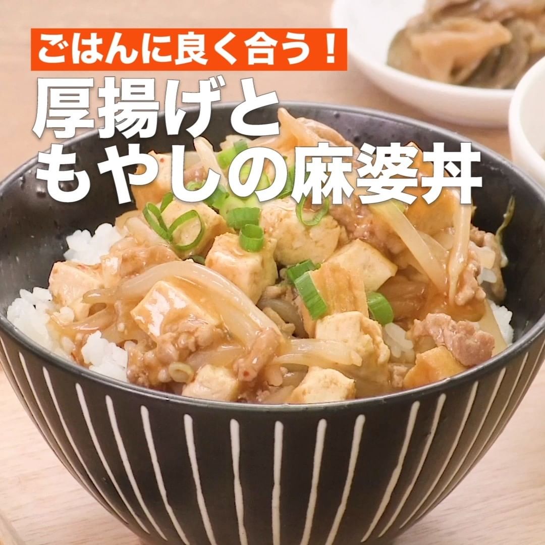 ⑧<ごはんに良く合う!厚揚げともやしの麻婆丼>