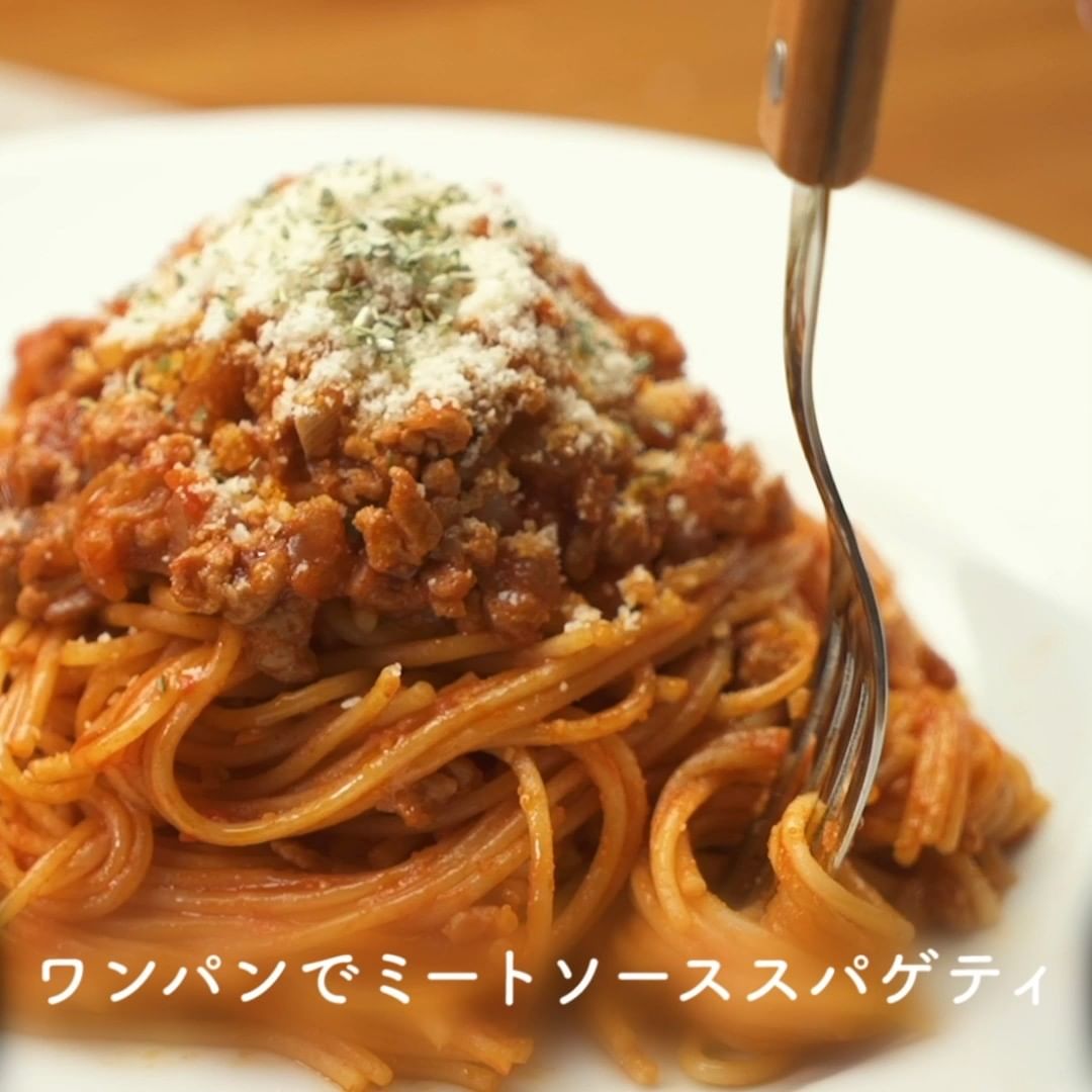 ①ワンパンでミートソーススパゲティ