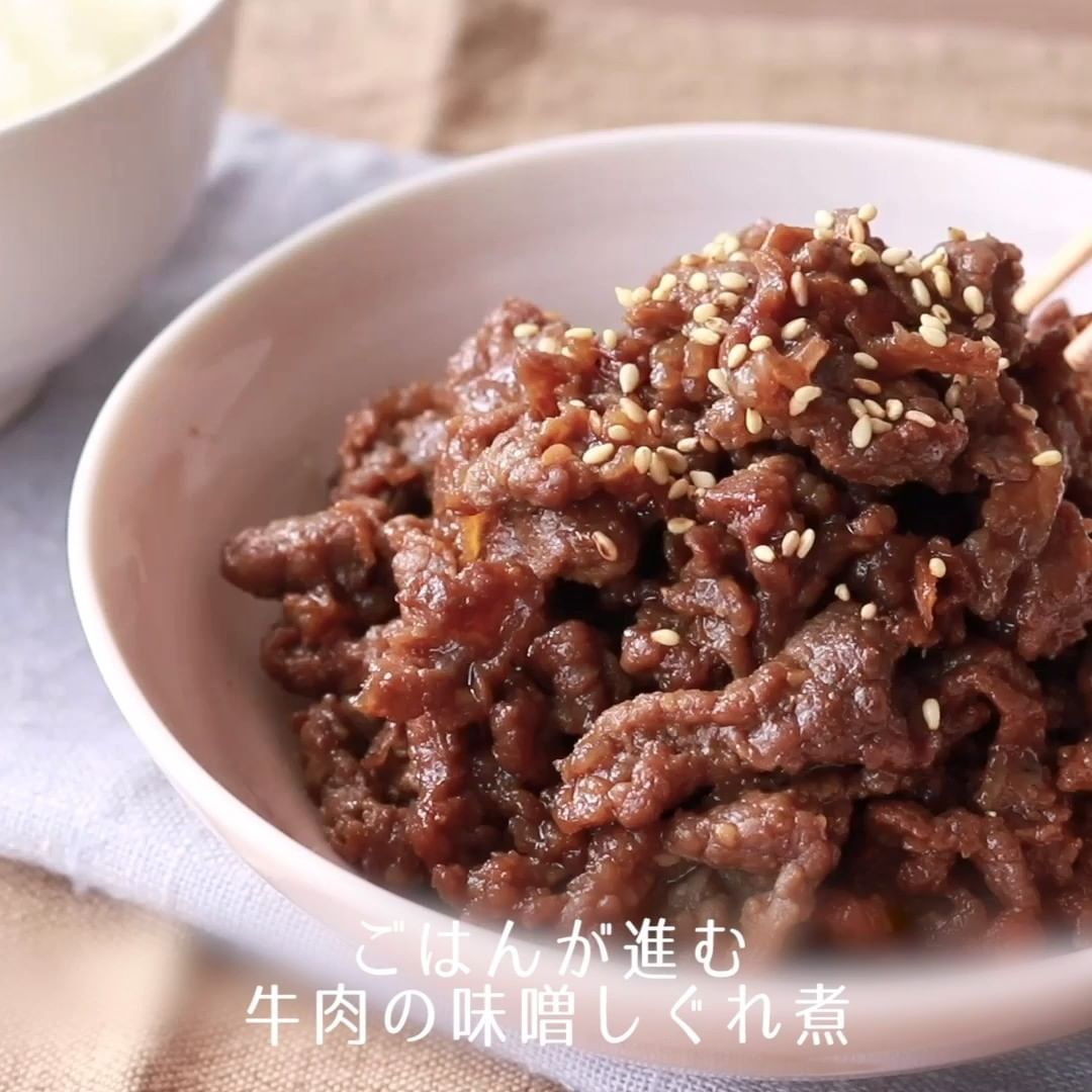 ①ごはんが進む 牛肉の味噌しぐれ煮