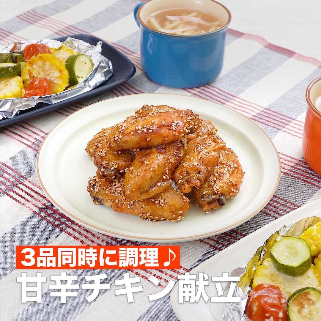 3品同時に調理♪甘辛チキン献立