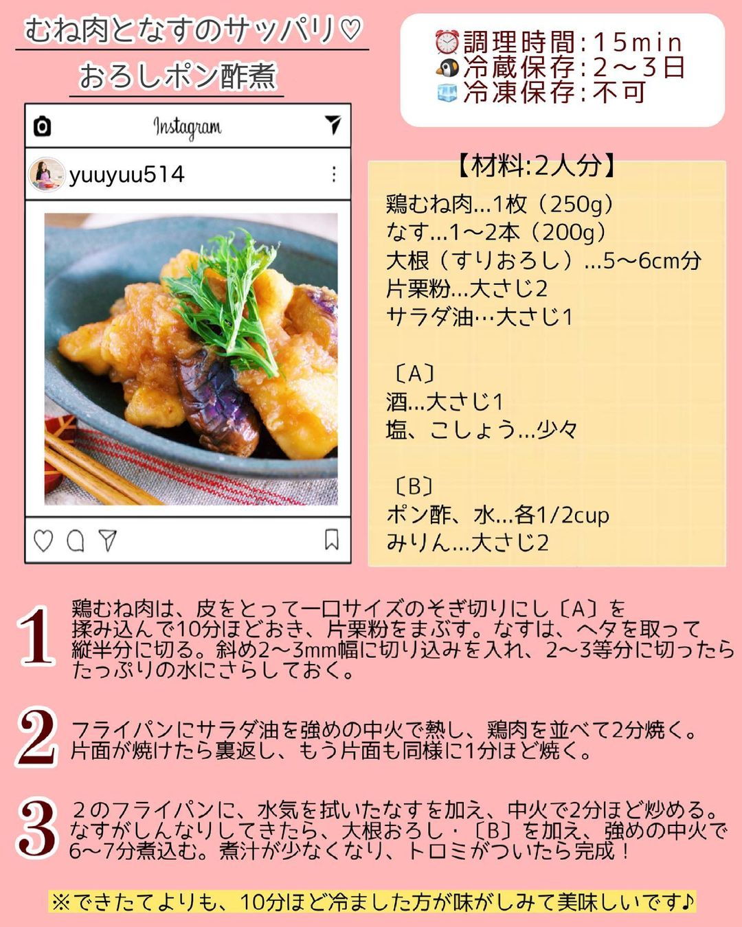 ➋むね肉となすのサッパリ♡おろしポン酢煮