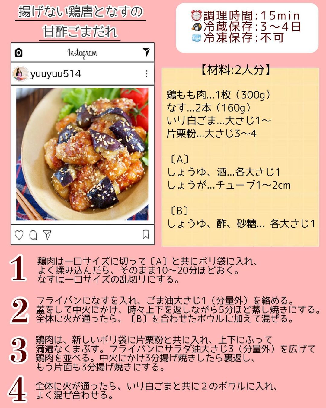 ➌揚げない鶏唐となすの甘酢ごまだれ