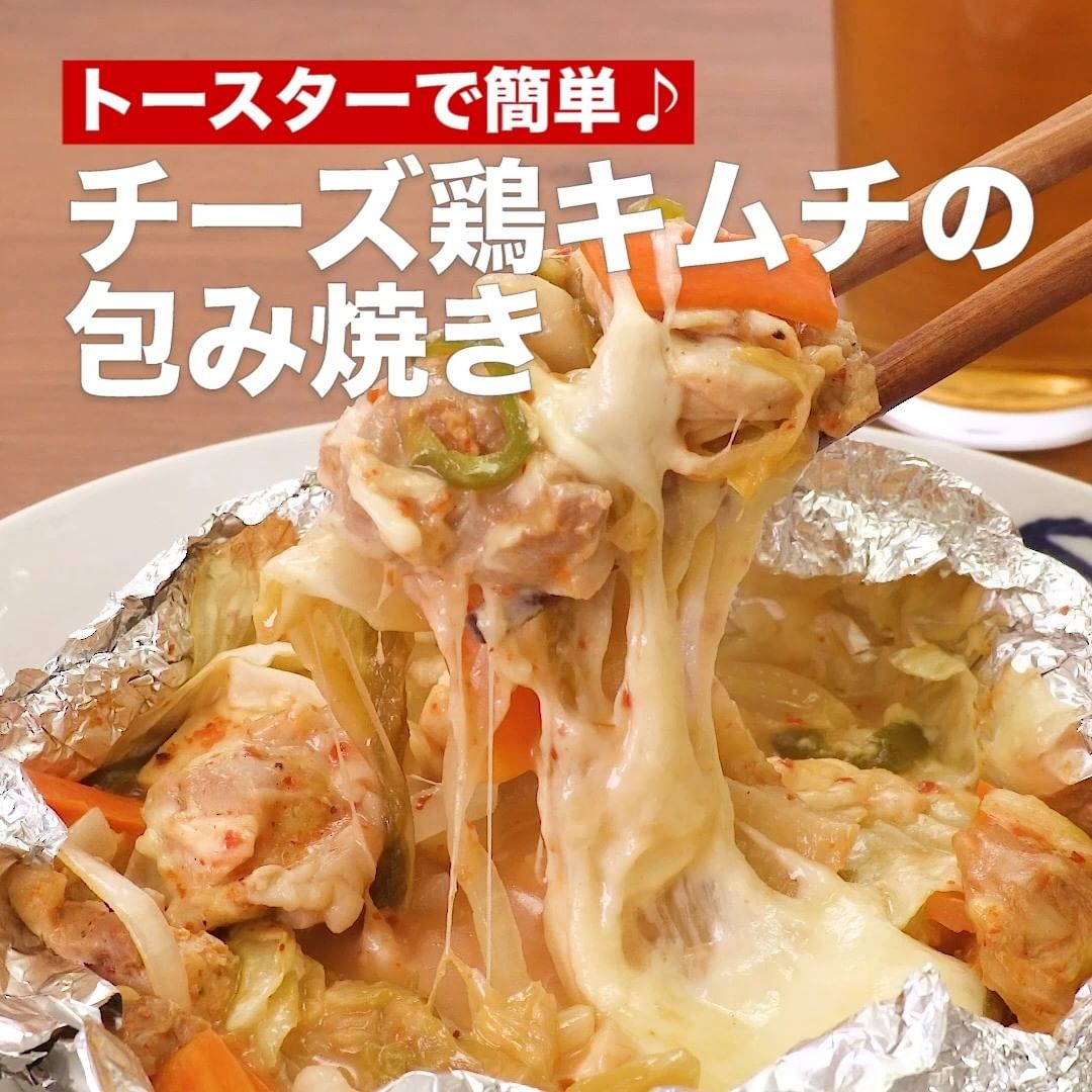 ⑦<トースターで簡単♪チーズ鶏キムチの包み焼き>