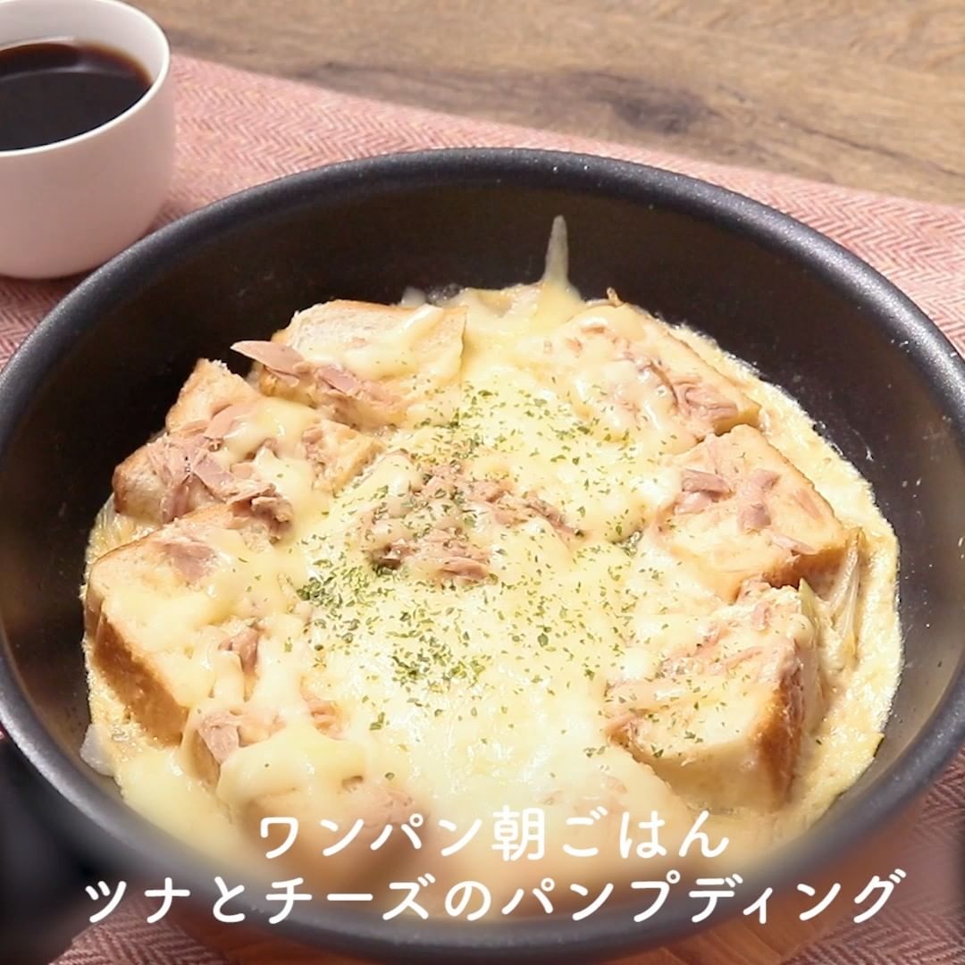 ⑦ワンパン朝ごはん ツナとチーズのパンプディング