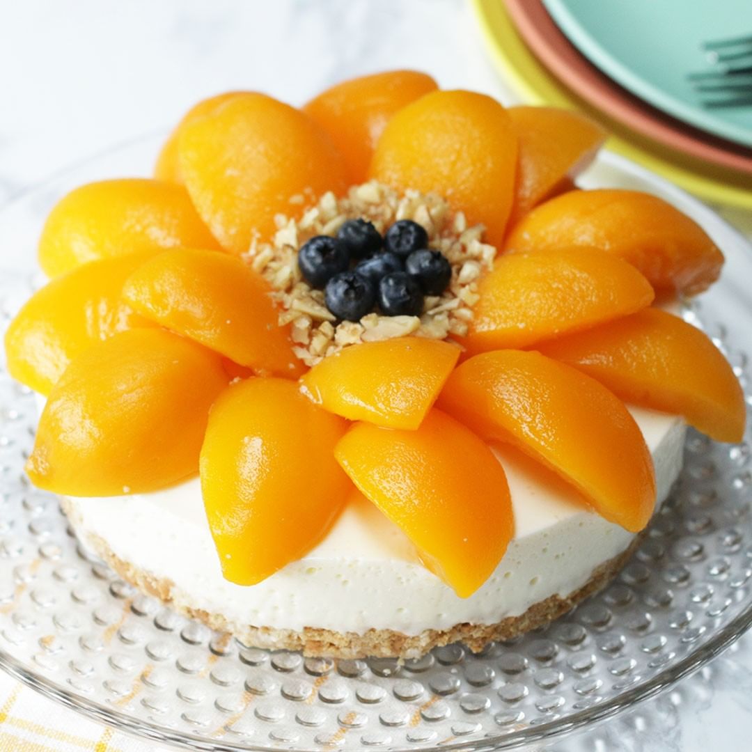 桃の缶詰で作れる!ひまわりチーズケーキ🌻