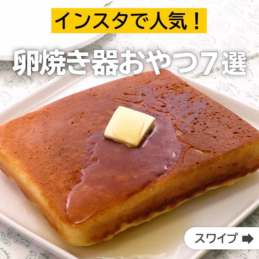 ちょっと厚めのホットケーキをご紹介!卵焼き器で焼くといつもと少し違った形の四角いホットケーキが焼けます♪フルーツ、ホイップクリームをのせてアレンジしてみてください!