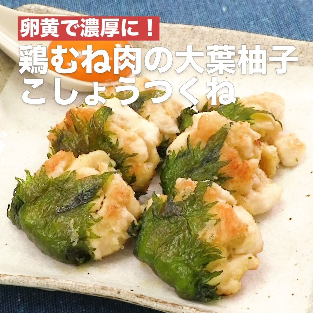 ⑤<卵黄で濃厚に!鶏むね肉の大葉柚子こしょうつくね>