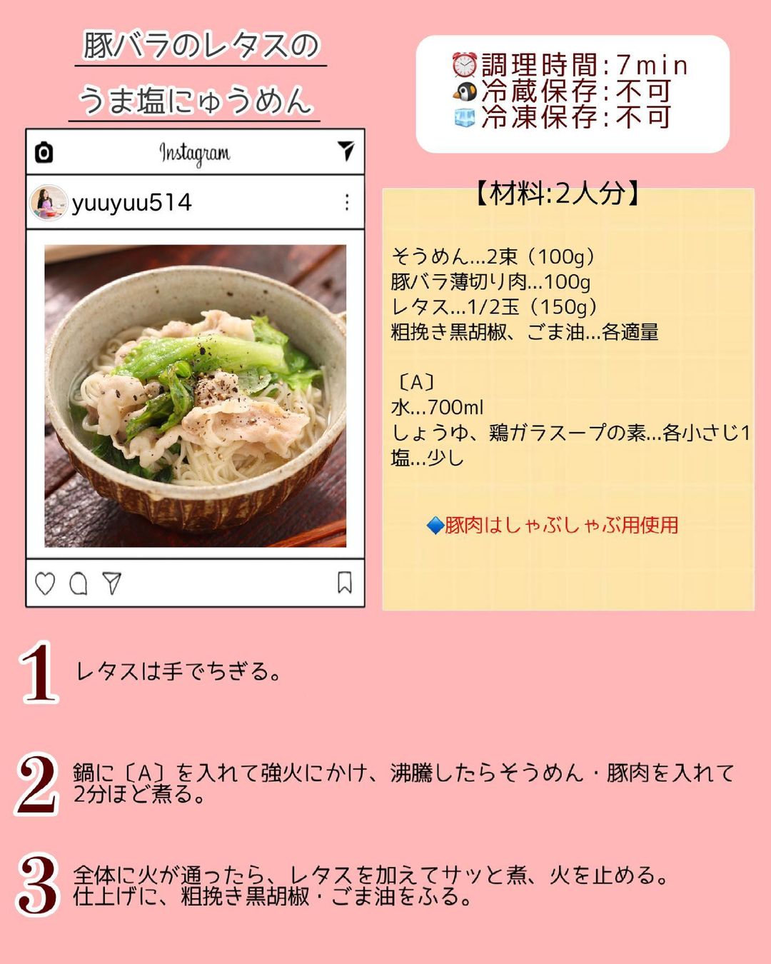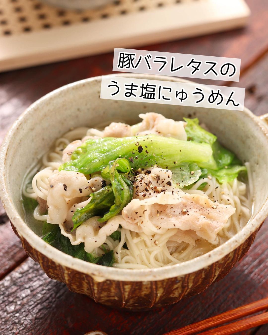 𓎩 #豚バラレタスのうま塩にゅうめん