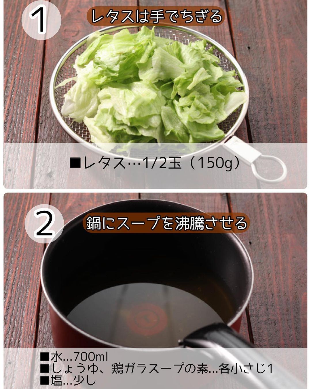 ➊レタスは手でちぎる。