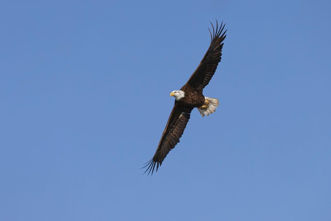 I was photographing flying Great Blue Herons and Anhingas at the Venice Rookery when a flock of Whistling Ducks suddenly burst into flight beyond the far shoreline, causing me to look upward just as this American symbol came gliding right toward our cameras for a great photo opportunity. The EOS R5’s eye-tracking yielded spot-on focus on every frame.”