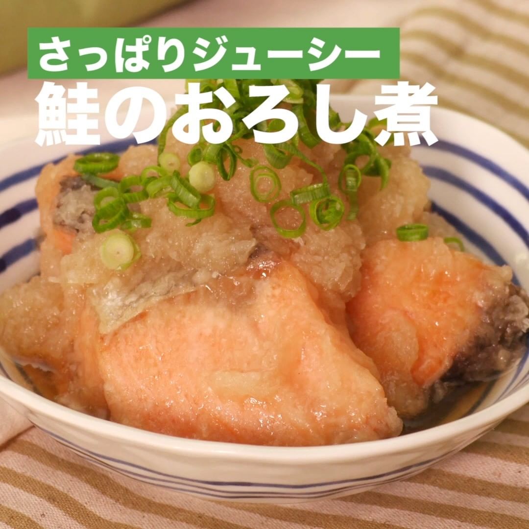 揚げ焼きにしたジューシーな鮭に大根おろしでさっぱりいただきます♪やわらかしっとりな鮭のおろし煮をどうぞ!