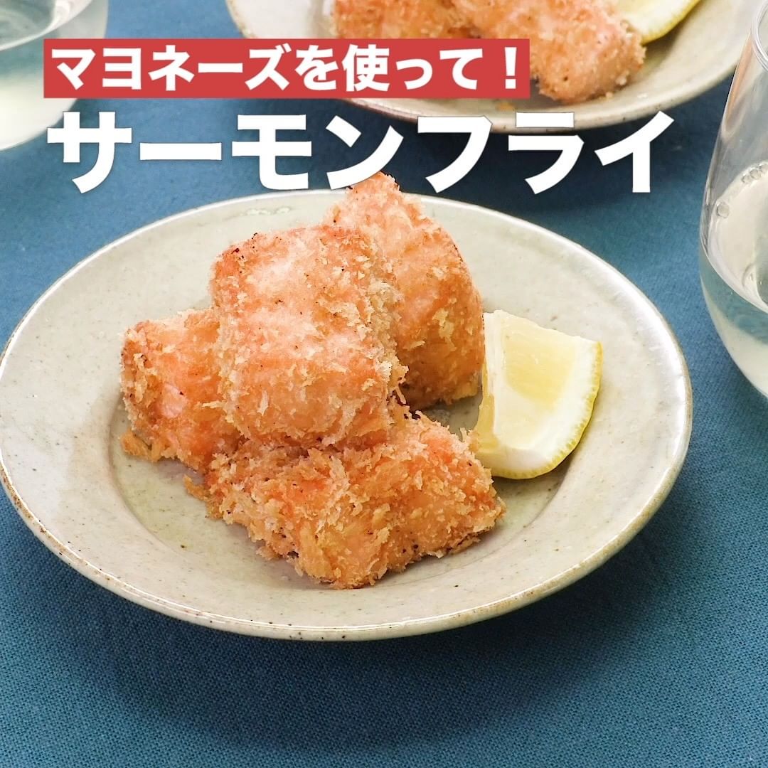 こんがりきつね色が食欲をそそるサーモンフライのご紹介です!衣はマヨネーズを使うことでバッター液いらず!簡単でお手軽にフライができます!お好みでレモンを絞ってお召し上がりください♪