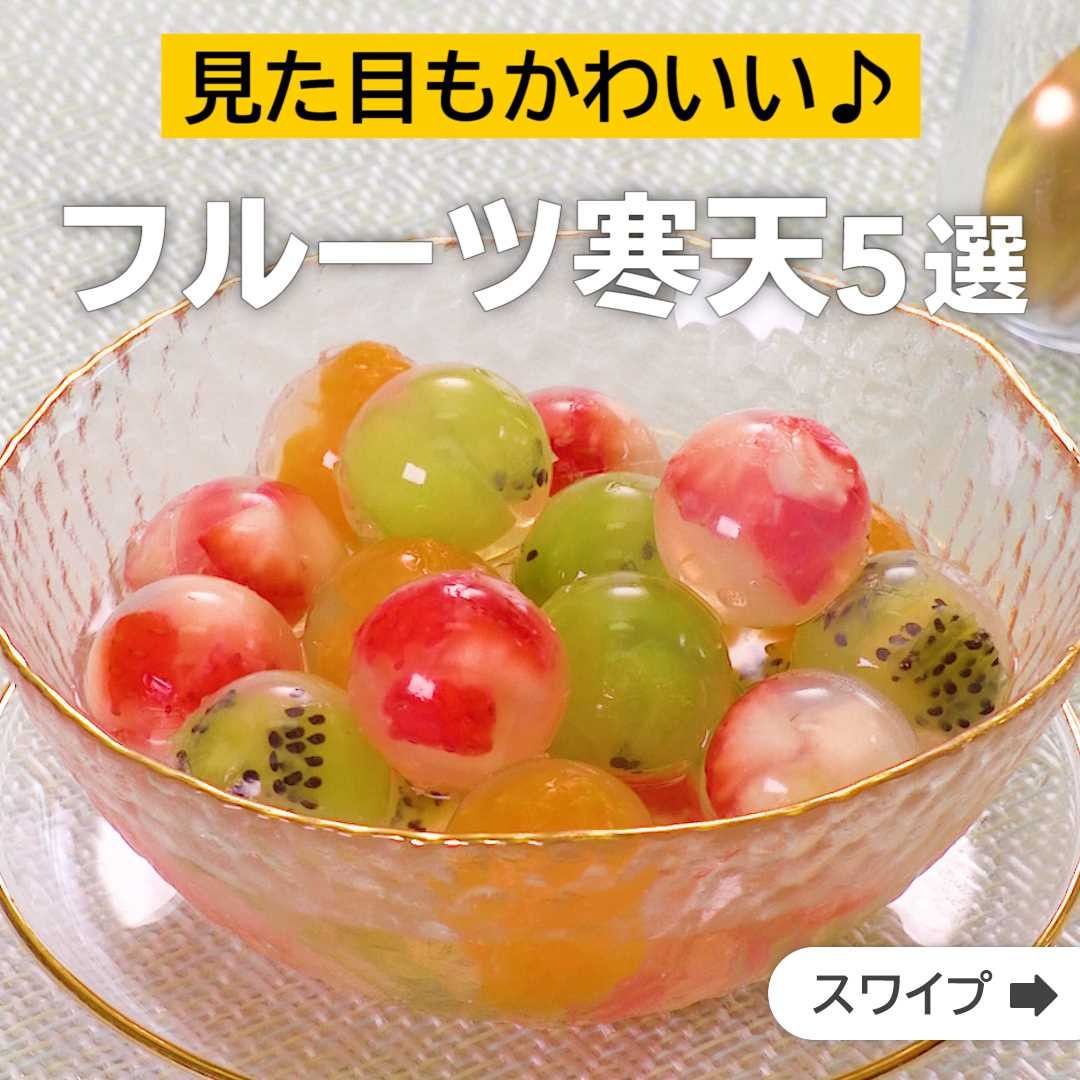 丸型に固めたゼリーが見た目もかわいくおもてなしにもぴったり♪自宅でお手軽に作れるように、手に入りやすい寒天で作るレシピをご紹介します。中に入れるフルーツやシロップはお好みでアレンジしてみてください!※5歳以下の子どもは小さくて丸い形状のものや噛み切りづらいものは、窒息の懸念があるため食べさせないようご注意ください。
