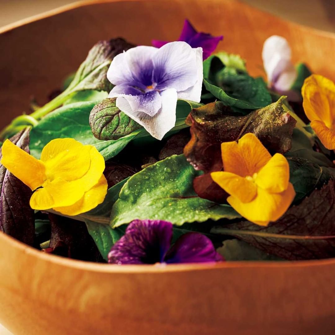 写真①▷広島の三原にある「梶谷農園」のハーブを使った「リーフサラダ」 。