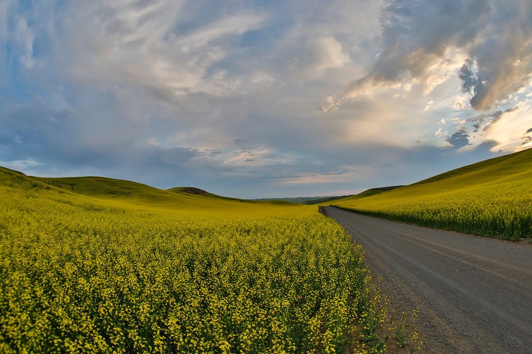 Photo by #CanonExplorerOfLight @darrellgulin: “Golden yellow canola fields on each side of the gravel road just to the east of Colton, eastern Washington. The clouds breaking up just before sunset taken with my Canon EOS 5D Mark IV with settings of 1/500 second at f/8 and ISO of 1000.”