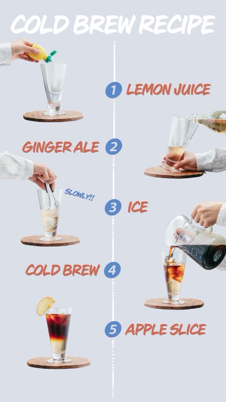 レモンやりんごの風味によってコールドブリューならではの自然な甘みが引き立ち、ジンジャーエールのほのかなスパイス感が後味の清涼感を演出してくれます😉✨