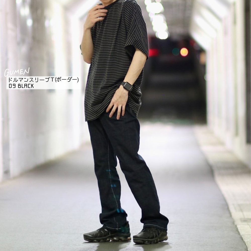 ☑︎ドルマンスリーブT(5分袖)(ボーダー)NT+E