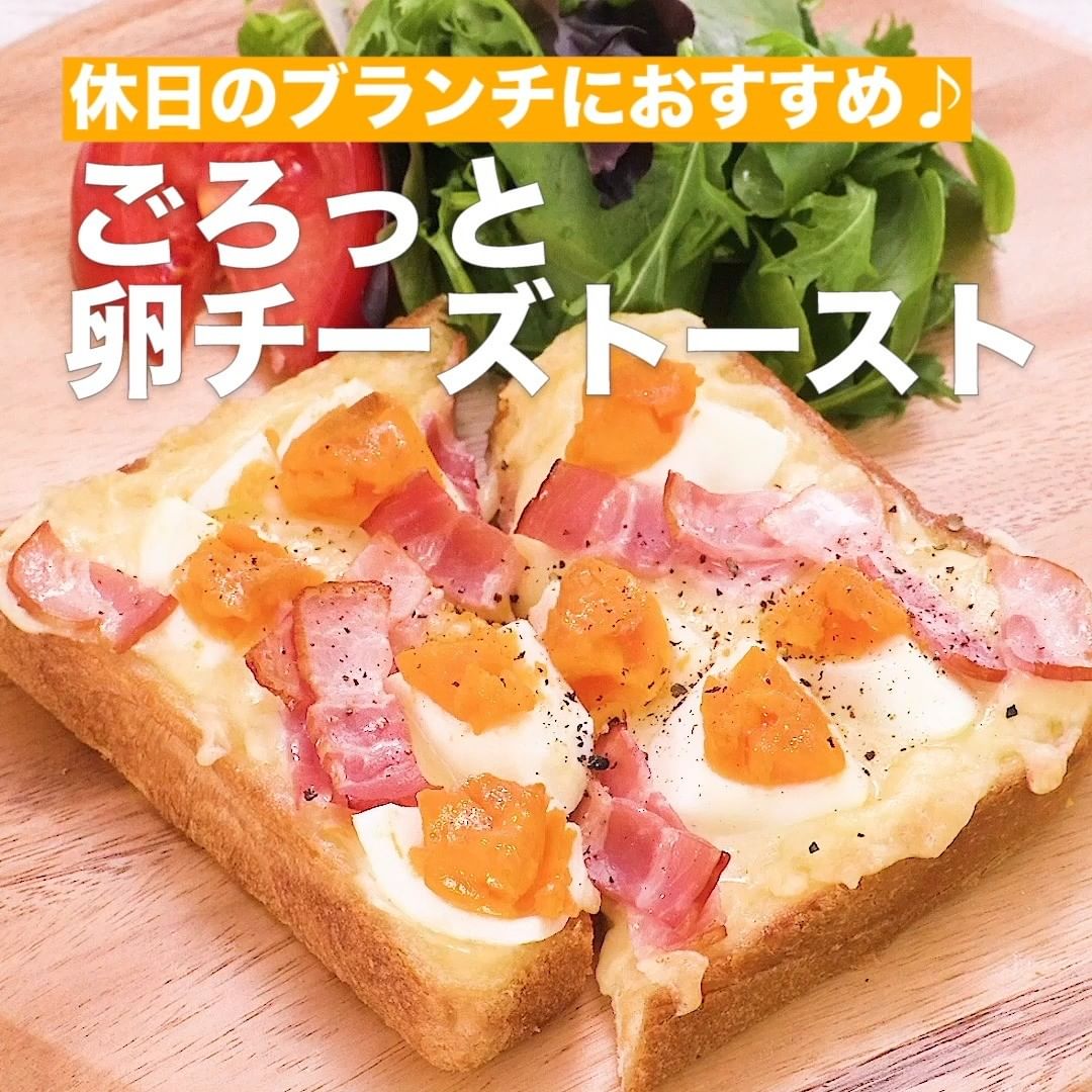 マヨネーズとチーズのコクがとにかくたまらないおいしさです♪半熟ゆで卵とベーコンをプラスして満足感のある仕上がりにしました!休日のブランチにいかがですか?贅沢な気分になれること間違いなしです!
