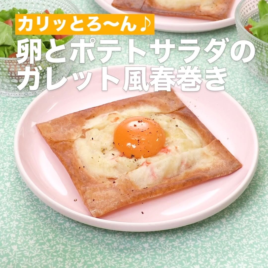 ①<カリッとろ〜ん♪卵とポテトサラダのガレット風春巻き>