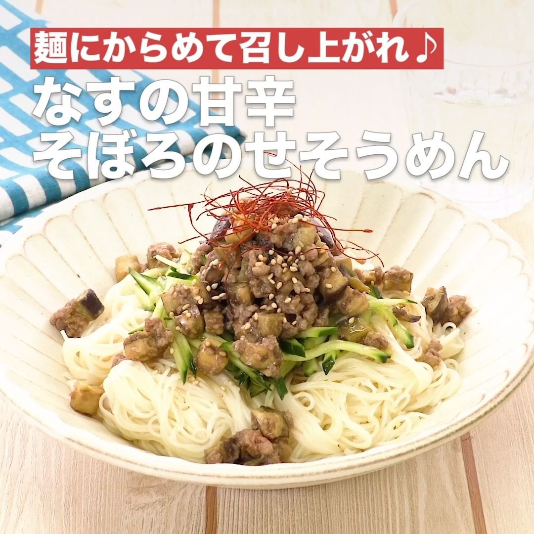 ④<麺にからめて召し上がれ♪なすの甘辛そぼろのせそうめん>