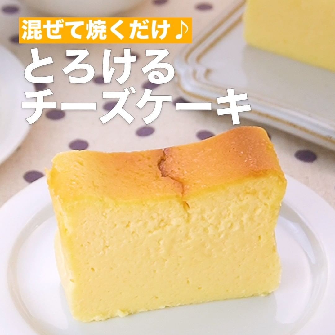 とろけるような食感のチーズケーキです。手軽な材料で作ることができ、混ぜて焼くだけなので簡単!焼いているけれど中はレアチーズケーキのようななめらかな仕上がりです♪しっかり冷ましてからお召し上がりください。