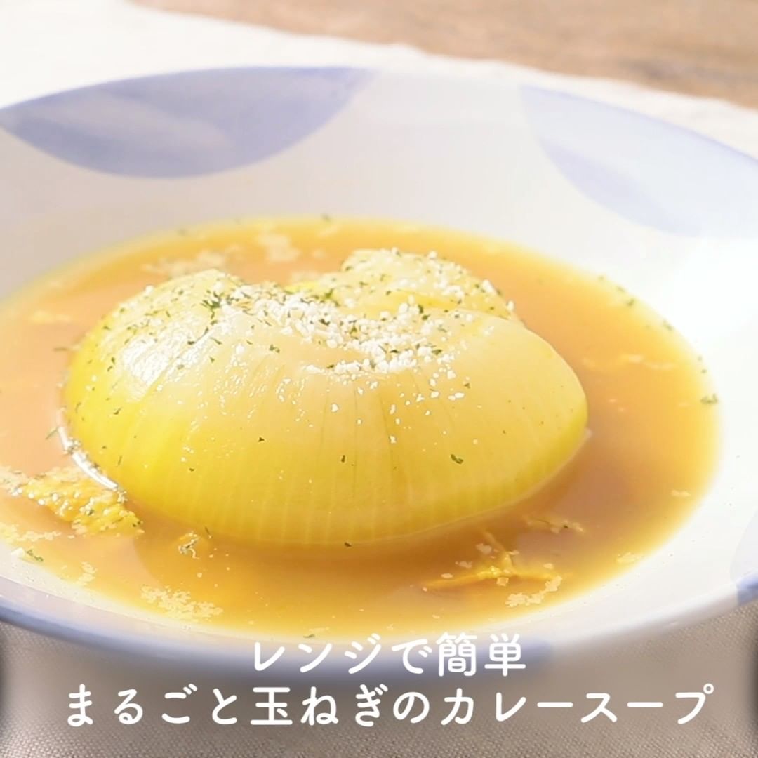 ⑤レンジで簡単 まるごと玉ねぎのカレースープ