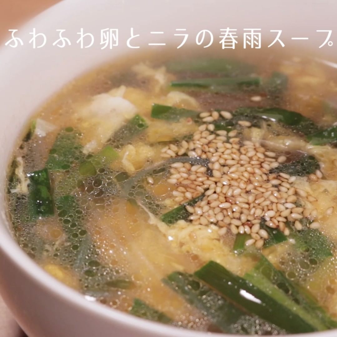③ふわふわ卵とニラの春雨スープ