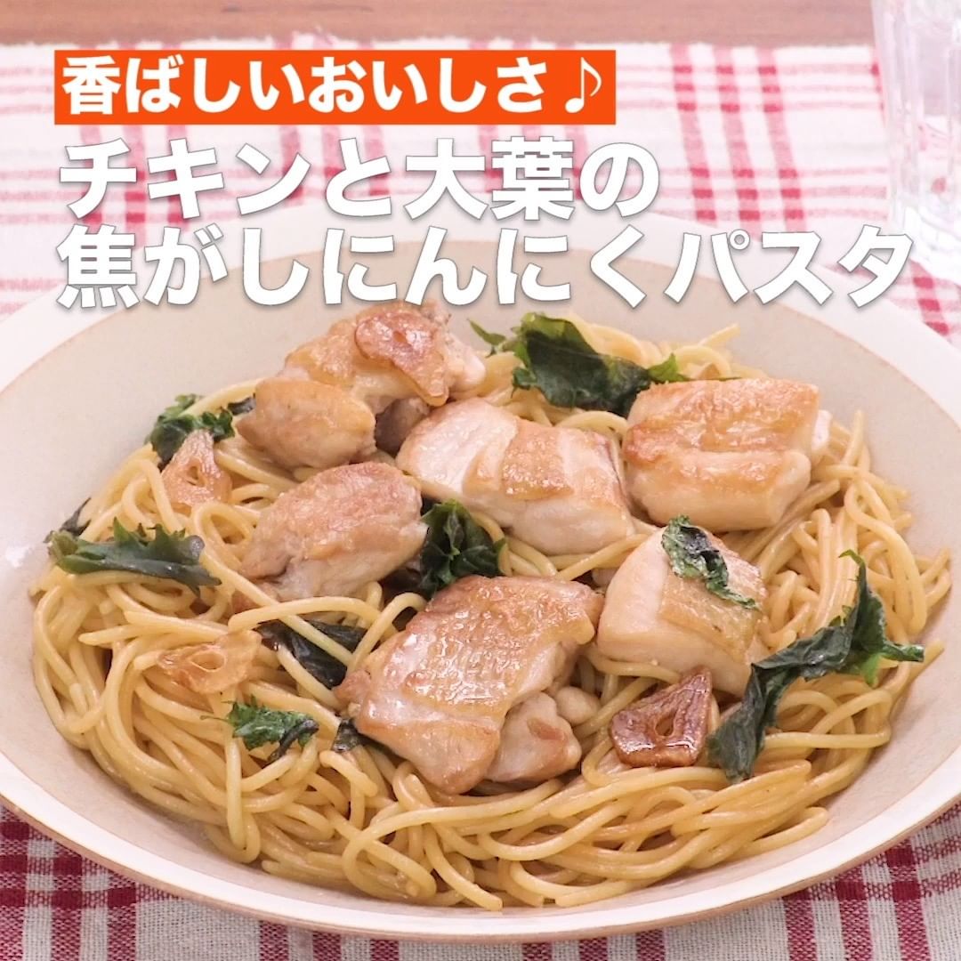 ④<香ばしいおいしさ♪チキンと大葉の焦がしにんにくパスタ>