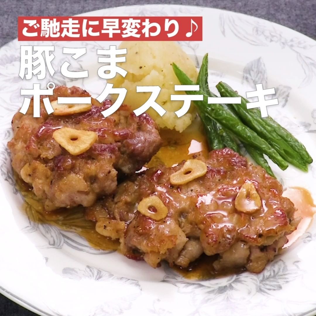 ⑦<ご馳走に早変わり♪豚こまポークステーキ>