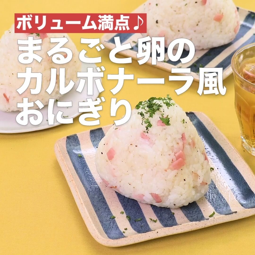 チーズ風味のごはんに半熟卵を組み合わせればカルボナーラ風のおにぎりに♪ブランチや、小腹がすいた時にもおすすめです!