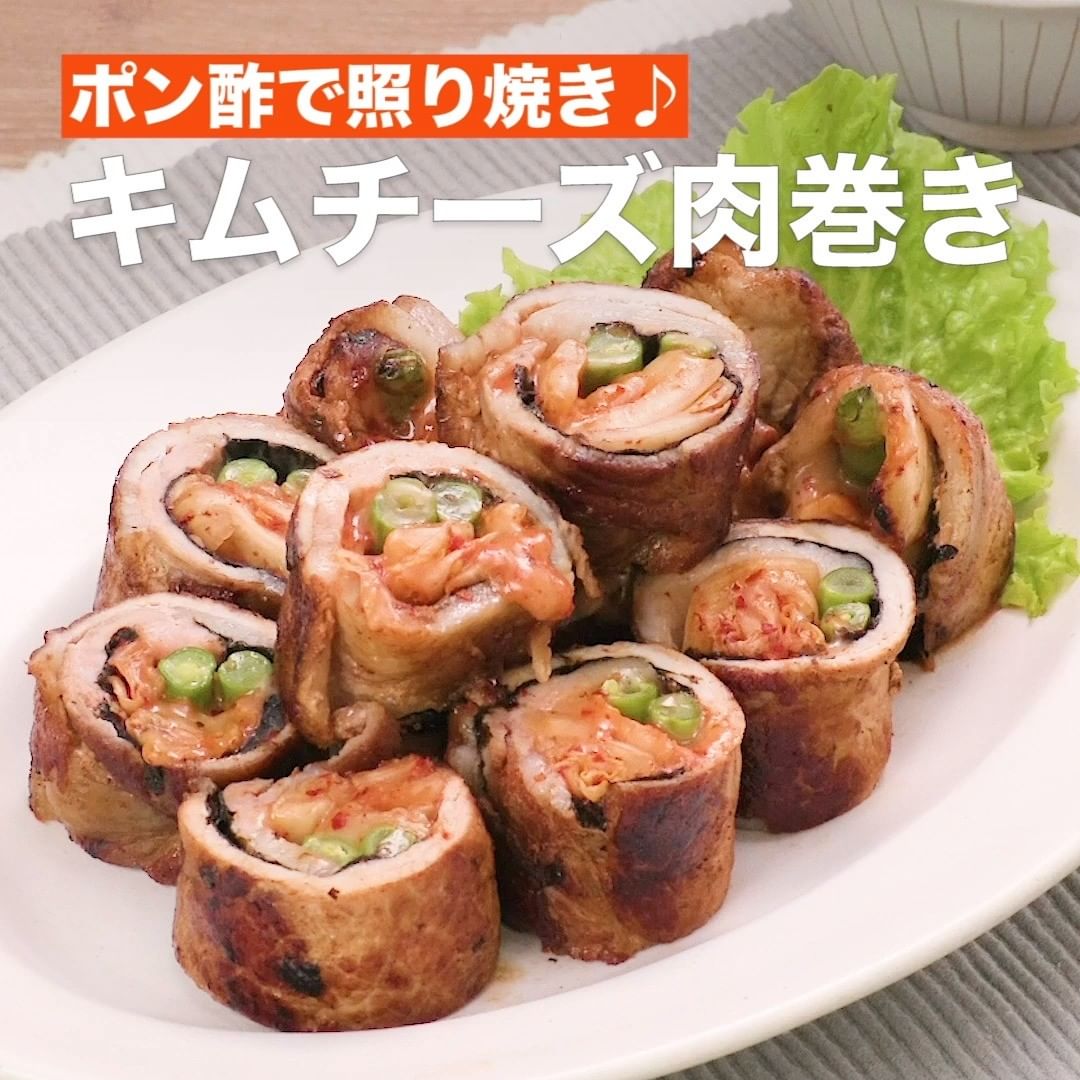 ④<ポン酢で照り焼き♪キムチーズ肉巻き>