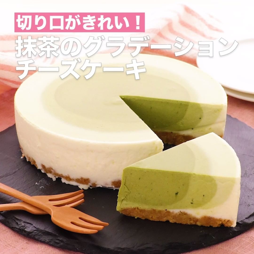 ②<切り口がきれい!抹茶のグラデーションチーズケーキ>
