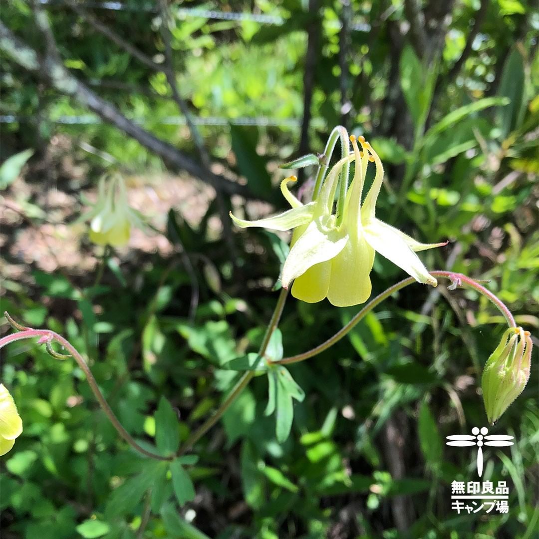 写真3枚目は、釣りエリアで初夏から夏にかけて咲く、山野草のキバナノヤマオダマキの花。後ろに伸びた触覚のような突起は距(きょ)と呼ばれ、先端には蜜を分泌する蜜腺があります。