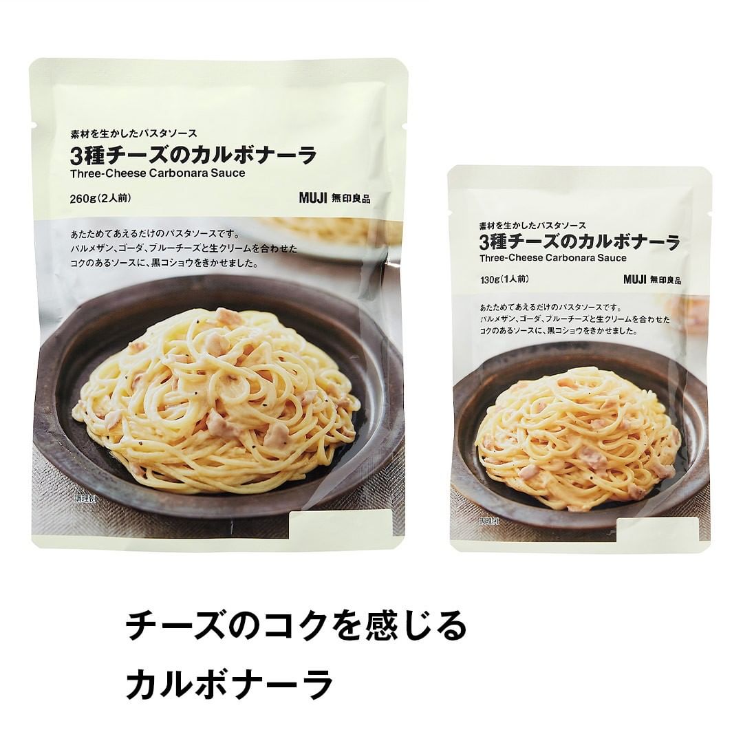 2人前は「素材を生かしたパスタソース 炒め玉ねぎとベーコンのナポリタン」、「素材を生かしたパスタソース 3種チーズのカルボナーラ」でも用意しています。