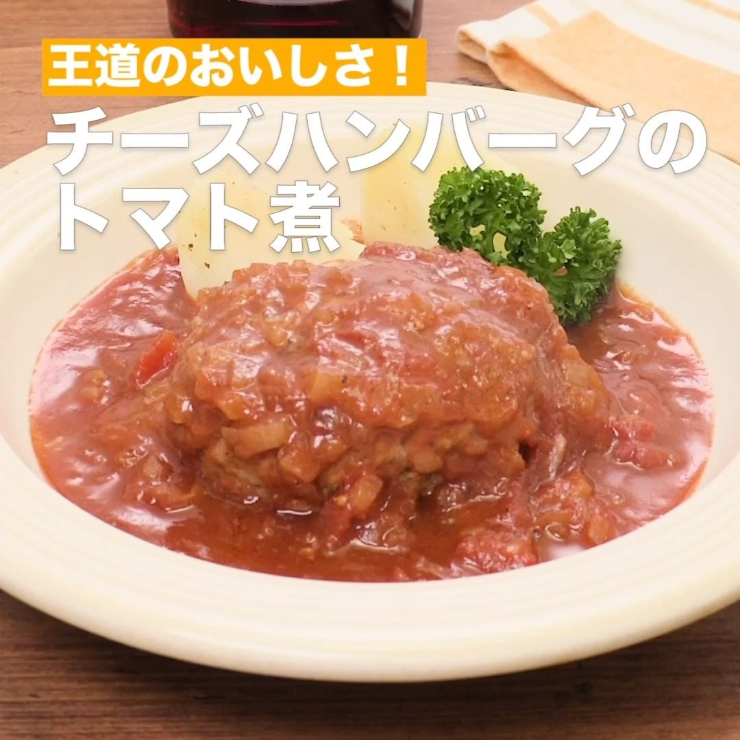 ④<王道のおいしさ!チーズハンバーグのトマト煮>