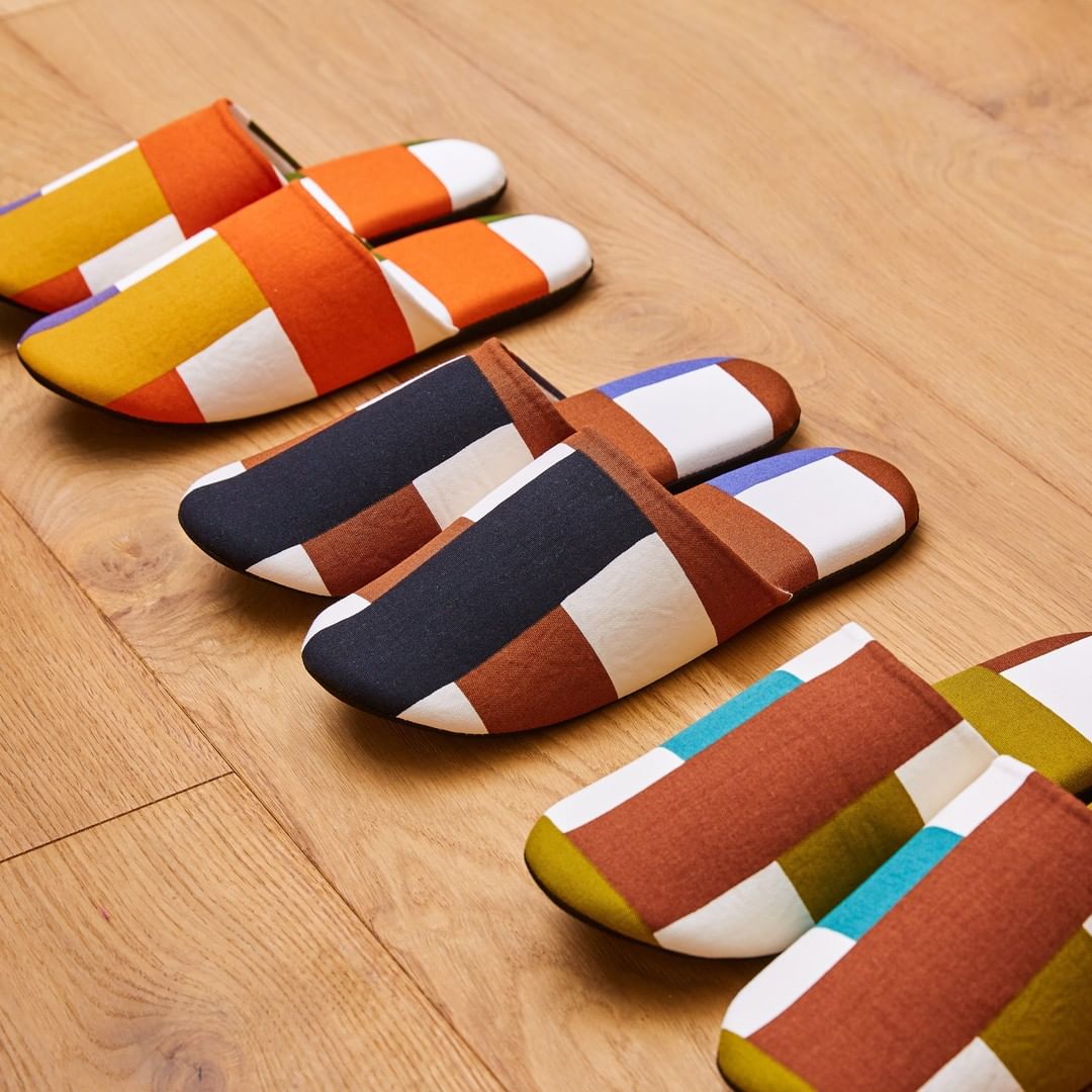 MUJI HOTEL GINZA のアートを設えた客室にお泊まりいただけるアートギャラリールームでは、粟辻博さんの作品「オーガスト」、「リンゴ」、「ジテンシャ」に合わせたアメニティを揃えております。スリッパ、ランドリートートバッグ、コースターはお持ち帰りいただけます。