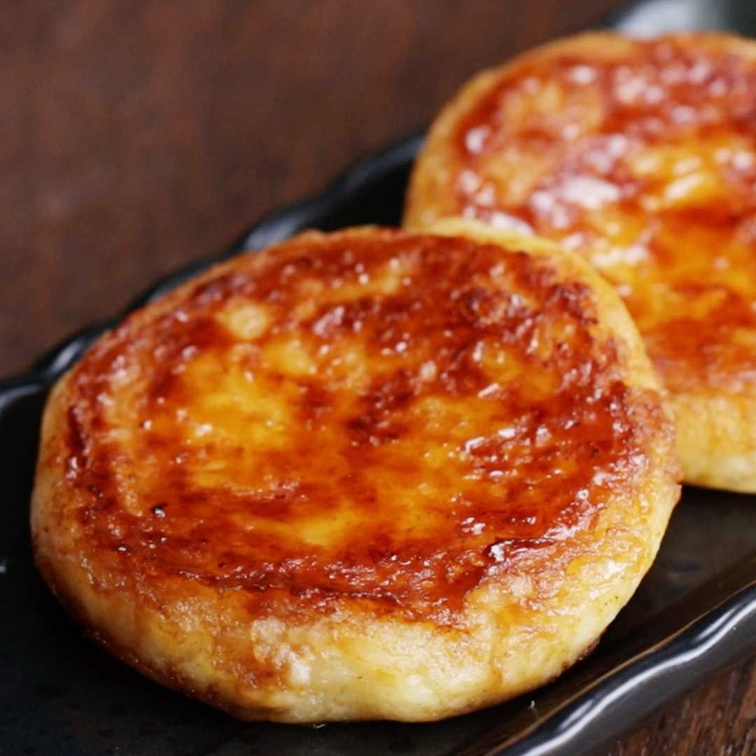 4. フライパンにバターを入れて中火にかけ、バター溶けたら(3)を並べ、。両面に焦げ目がつくまで焼く。はけなどで両面にたれを塗ったら、完成!