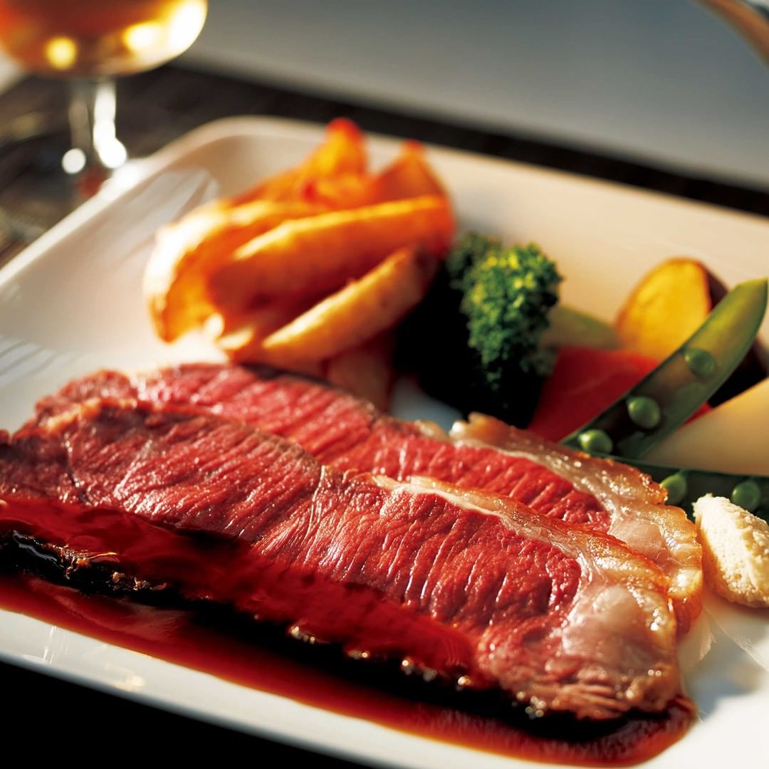 低温で2時間、じっくりと火入れした国産牛のサーロインは、ホテル伝統の1皿。