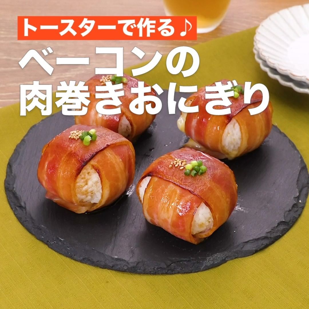 ⑤<トースターで作る♪ベーコンの肉巻きおにぎり>