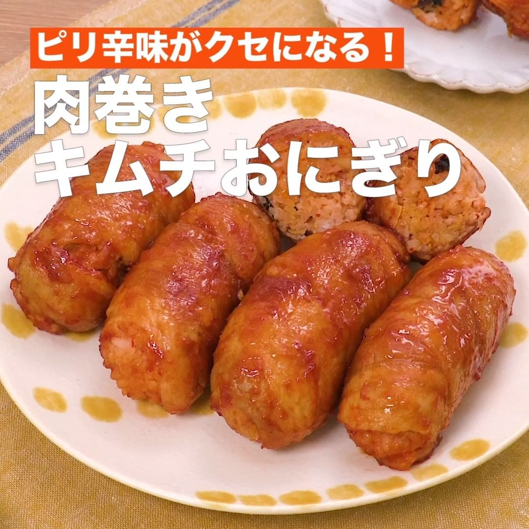 ③<ピリ辛味がクセになる!肉巻きキムチおにぎり>