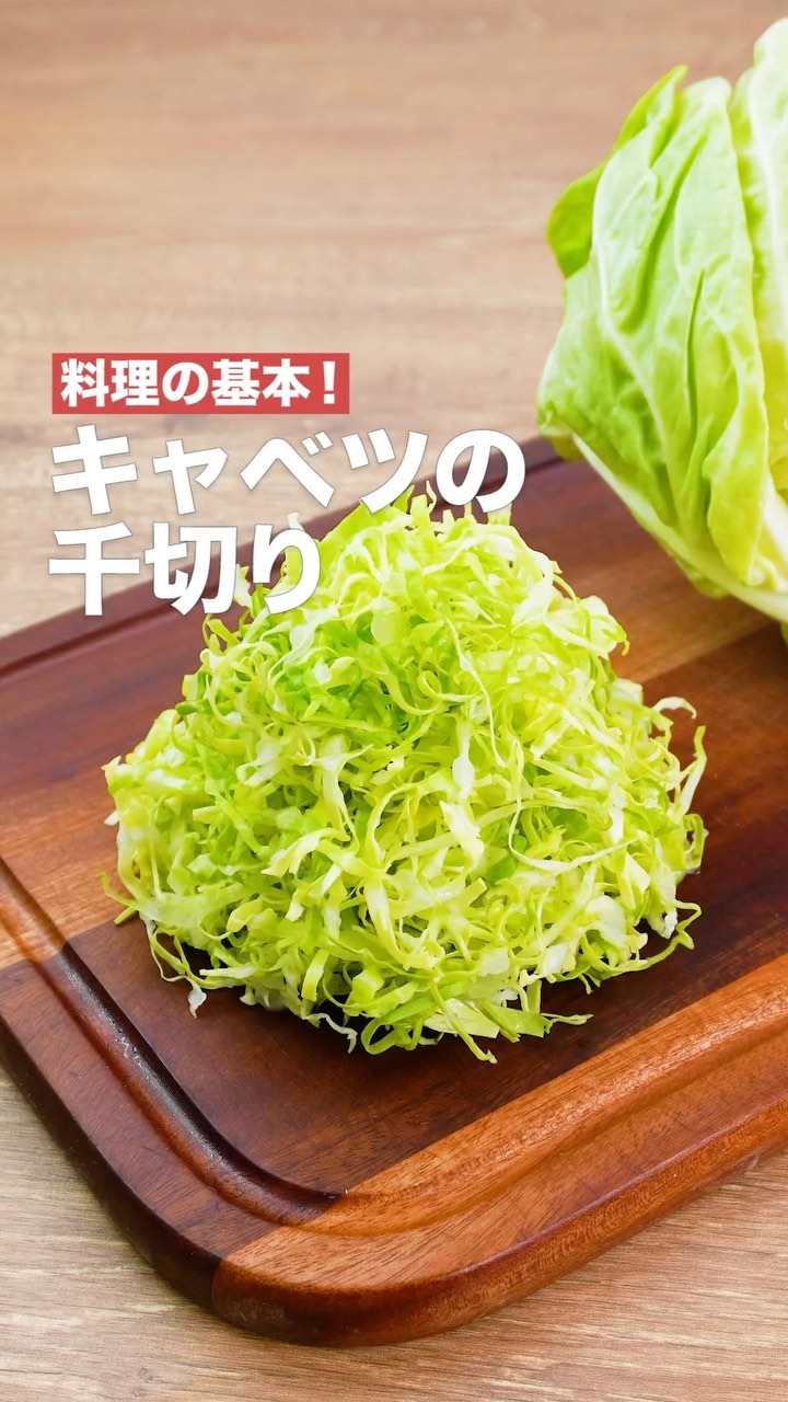 キャベツの千切りをご紹介!キャベツは水にさらすことでシャキッとした歯ごたえになります。サラダや生で食べる時の切り方におすすめです!