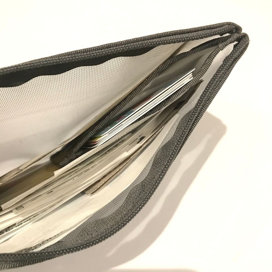 ポケットが、キャッシュカードをいれるのにぴったりなんです。かさばらず、通帳と一緒に収納できるのは嬉しいですよね。