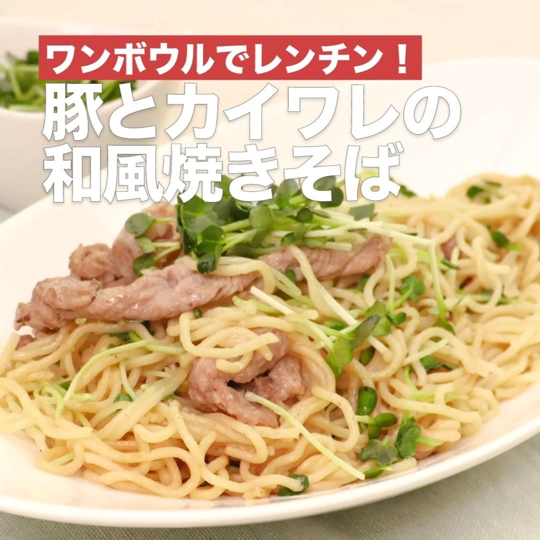 ⑤<ワンボウルでレンチン!豚とカイワレの和風焼きそば>