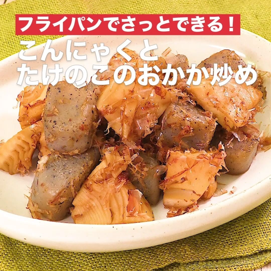 ⑤<フライパンでさっとできる!こんにゃくとたけのこのおかか炒め>
