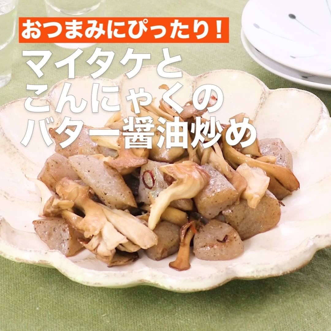 ③<おつまみにぴったり!マイタケとこんにゃくのバター醤油炒め>