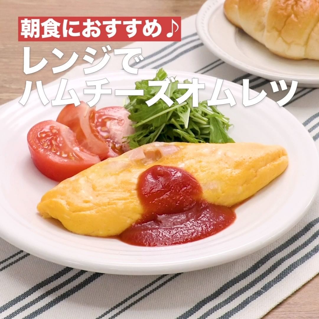 ⑤<朝食におすすめ♪レンジでハムチーズオムレツ>